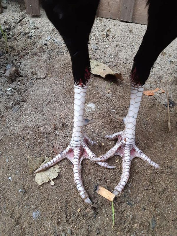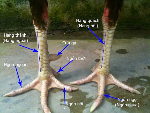 Chân gà phải bao gồm đầy đủ các ngón chân và cựa và móng. Đây là những vũ khí chính của gà để có thể đánh bại đối thủ trong trận chiến. Khi đã thiếu mất một bộ phận nào đó thì tỉ lệ giành chiến thắng sẽ thấp hơn so với những con gà khác. Tất nhiên có những chú gà bị thiếu một vài bộ phận vẫn đá hay nhưng phải biết rằng đó chỉ là thiểu số mà thôi.